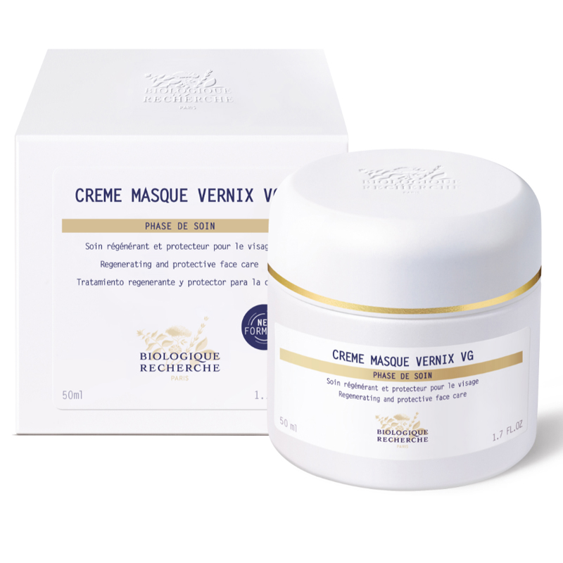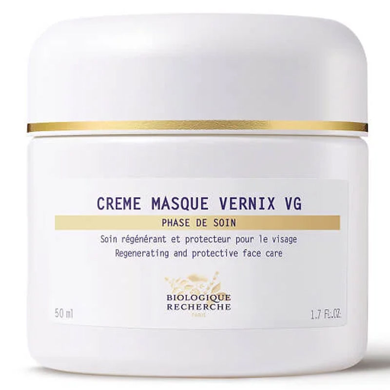 Crème Masque Vernix VG Biologique Recherche способствует восстановлению эпидермиса и дарит ему «вторую жизнь». Уникальное культовое средство для ухода за кожей вдохновлено первородной смазкой, защищающей эпидермис новорождённых. Крем-маска специально разработана для регенерации и защиты кожи. Формула, богатая липидами, белками и пептидами, выступающими в роли антиоксидантов, имитирует оригинальный состав первородной смазки на коже новорождённого и помогает поддерживать прочный и здоровый кожный барьер. Защищенная от агрессивных факторов окружающей среды, кожа питается, регенерируется и выглядит восстановленной.